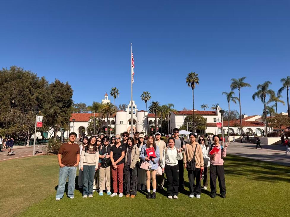 2025级本科生冯天洋同学于2026年寒假期间赴美国圣地亚哥州立大学进行了为期一个月的交流学习。期间,冯天洋同学深入课堂,与同学协作完成课堂展示,并通过经典美国电影的赏析与讨论进一步拓展文化视野。同时,她还走访了圣地亚哥、洛杉矶等地,领略独具当地特色的人文与自然景观。本次访学不仅提升了她的语言应用能力、充实了专业知识储备,还让她结识了各国友人,进一步拓宽了国际视野。