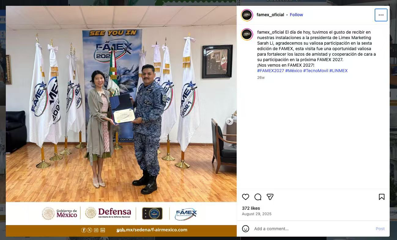 2025年在墨西哥FAMEX航空航天博览会中 被墨西哥军方授予卓越贡献荣誉