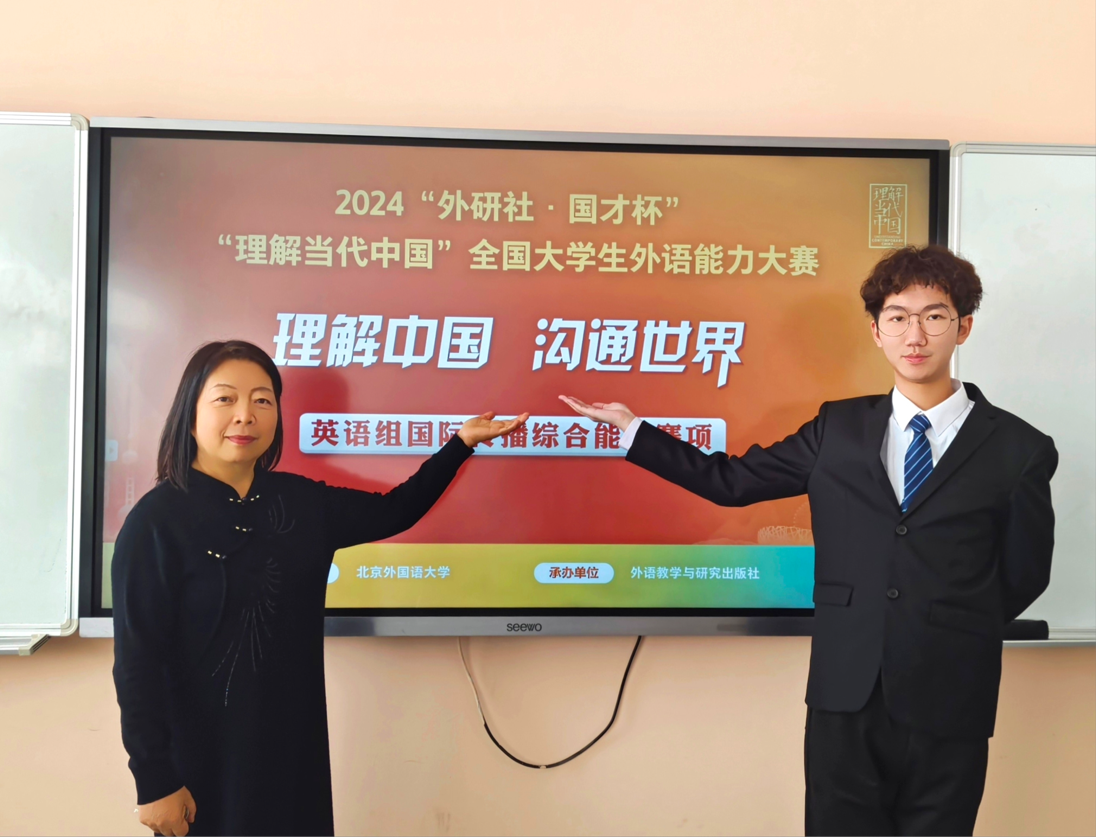 在校期间,大二时他曾担任阅读写作俱乐部负责人,大三、大四两年,他凭借扎实的专业实力,连续进入外研社综合能力国赛。每一份荣誉都并非偶然,既是潜心专注的成果,也是持之以恒的回报。
