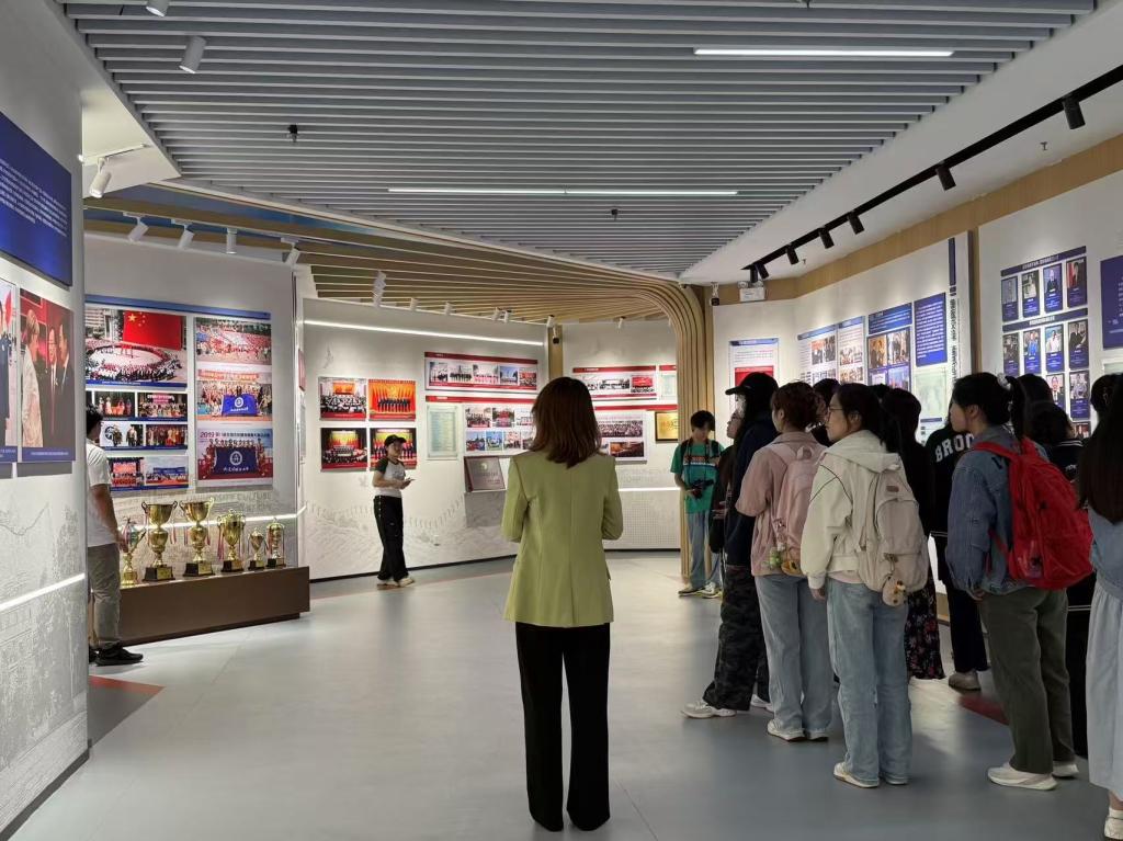 组织员汪霞带领学员们参观校史馆。汪霞老师向学员们介绍了大连外国语大学发展的四个不同阶段,详细讲解了大外的建设历程,并表示我校将在党组织的领导下勇立改革潮头,朝着全面建成“东北亚区域特色鲜明的高水平应用型外国语大学”不断前行。汪霞老师强调,同学们要保持锐意进取的态度,紧随时代发展,把握时代浪潮,争做新时代的接班人与建设者。
