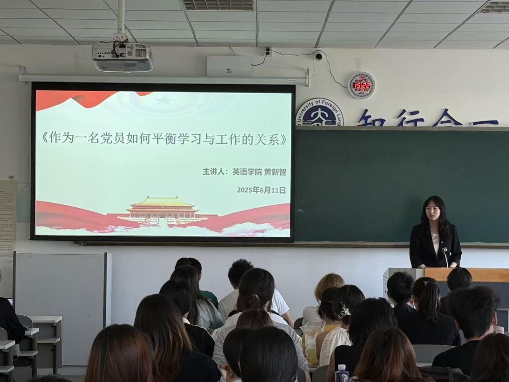 研究生党支部书记黄新智为入党积极分子们带来了《作为一名党员如何平衡学习与工作之间的关系》专题课程,她向同学们剖析了党的理论指引与实践成长之间的紧密关联,助力在座积极分子明晰如何有效统筹理论汲取与实际行动、提升综合素养。黄新智老师指出,理论联系实际是党的优良作风,同学们要扎实开展理论学习,积极投身实践锻炼,培养务实担当精神,强化服务群众本领。最后,黄新智老师以视频形式启发入党积极分子们要善于钻研理论、勇于实践探索,不断增强知行合一能力,努力实现学用相长,践行新时代青年的责任使命。