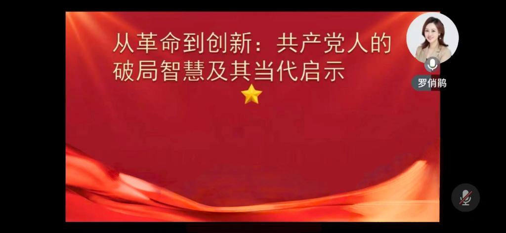 副院长罗俏鹃为同学们带来《共产党人的创新精神》专题课程,揭示了共产党人的破局智慧,彰显其对当代的深刻启示。罗院长以党史三大创新突破为切入点,向同学们介绍了中国共产党的伟大征程。此外,罗院长讲授了创新方法论,引导同学们树立坚定不移的理想信念,培养创新精神。通过展示青年党员创新实践的成功案例,罗院长鼓励同学们秉持创新精神,勇于开拓新领域,肩负起新时代赋予青年的历史使命。