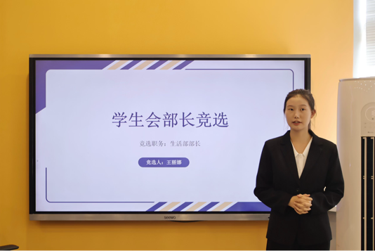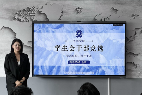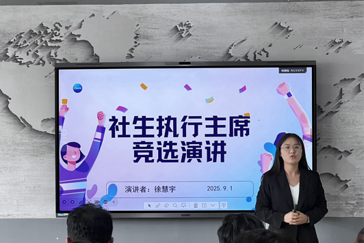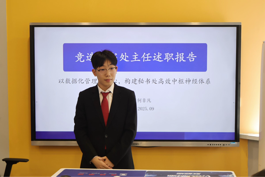 主席团换届现场,各位候选人围绕工作经历、参选初心、核心优势与未来工作规划等维度进行汇报陈述,展现了强烈的责任担当意识及新时代青年学生骨干的良好精神风貌。演讲结束后,曲镜达老师对候选人积极参与竞选、用心准备演讲的态度予以充分肯定,高度赞扬同学们展现出的青春风采与进取精神。曲老师向第54届学生干部表达衷心感谢,也期待新一届主席团能继续秉持开拓进取、认真负责的工作理念,开启学生组织工作的新篇章。