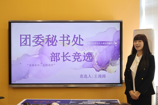 团委学生组织部长级换届选举面试在励业楼VR教室如期召开。候选人围绕个人基本情况、过往工作履历、自身竞争优势以及未来工作规划等方面进行汇报展示,他们以务实的态度和饱满的热情,阐述了对学生工作的深刻理解与独特见解。面对评委的针对性提问,候选人们沉着思考、从容应答,以切实的举措展现出对学生工作的热情和美好向往。