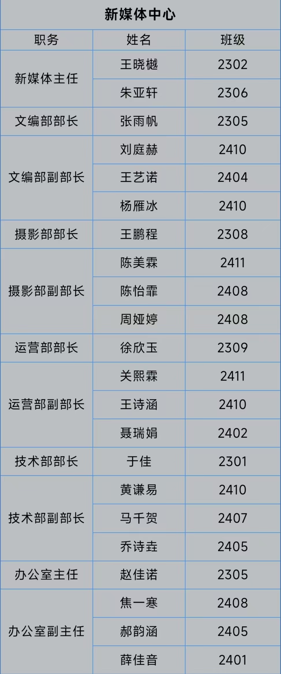 第55届团委学生组织换届选举结果公示如下。